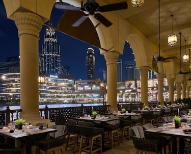 Maison De Curry offre une expérience culinaire raffinée avec une vue exceptionnelle sur le Burj Khalifa et les fontaines de Dubai. Le restaurant propose une cuisine fusion moderne mêlant influences asiatiques, indiennes et européennes, dans un cadre élégant et chaleureux.